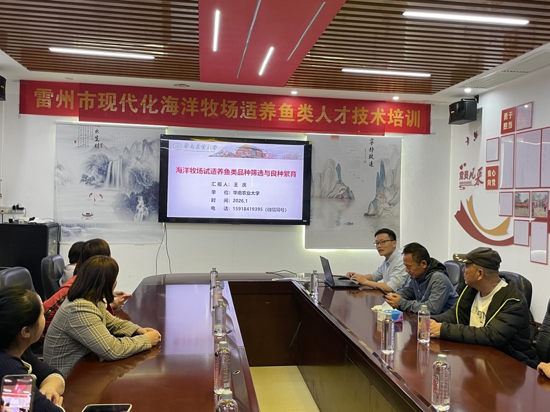 雷州市現(xiàn)代化海洋牧場人才技術(shù)培訓:海洋牧場試適養(yǎng)魚類品種篩選與良種繁育發(fā)表時間:2026-02-04 14:50 2026年1月29日,雷州市現(xiàn)代化海洋牧場人才技術(shù)培訓《海洋牧場試適養(yǎng)魚類品種篩選與良種繁育》在廣東海威農(nóng)業(yè)集團有限公司紀家基地順利開展。本次培訓由王慶授課,41名專業(yè)人員參與其中,為雷州市海洋漁業(yè)發(fā)展的技術(shù)提升與人才培養(yǎng)注入強勁動力。