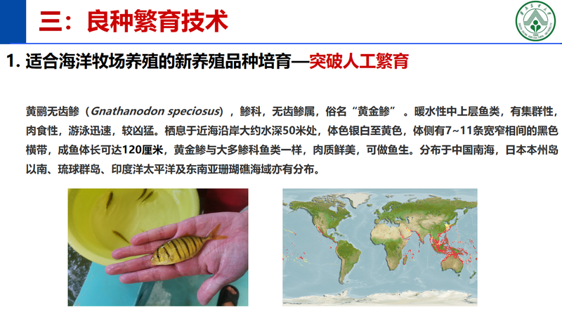 本次培訓授課內(nèi)容如下: 樹立大食物觀,向海洋要食物,建設(shè) “藍色糧倉” 成為漁業(yè)發(fā)展的重要方向。我國水產(chǎn)品產(chǎn)量已連續(xù) 30 年居世界第一,海水養(yǎng)殖產(chǎn)業(yè)規(guī)模穩(wěn)步擴大,但近岸養(yǎng)殖污染、魚病頻發(fā)等問題亟待解決,發(fā)展深遠海海洋牧場成為漁業(yè)轉(zhuǎn)型升級的關(guān)鍵路徑,而優(yōu)質(zhì)品種篩選與良種繁育則是海洋牧場可持續(xù)發(fā)展的核心。
